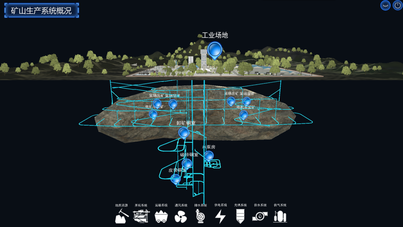 系統(tǒng)構(gòu)建露天和地下礦山真實(shí)場(chǎng)景,對(duì)工業(yè)廣場(chǎng),生產(chǎn)系統(tǒng),采礦方法和采裝設(shè)備等進(jìn)行虛擬仿真,充分解決了采礦工程專業(yè)教學(xué)不直觀,現(xiàn)場(chǎng)實(shí)習(xí)成本大的問(wèn)題,直觀的教學(xué)模式也能充分激發(fā)學(xué)生的自主能動(dòng)性。