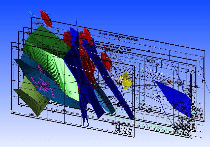 通過(guò)學(xué)習(xí)DIMINE,成功攻克了礦區(qū)原始圖件平剖面標(biāo)高不對(duì)應(yīng)的技術(shù)難題。針對(duì)我礦礦體南北延伸達(dá)3000m、巷道工程坡度變化大的復(fù)雜條件,創(chuàng)新采用巷道控制點(diǎn)連線→線附高程賦值的建模方法,精準(zhǔn)還原了礦體界線的真實(shí)空間賦存狀態(tài)?;诖私⒌娜V區(qū)三維礦體模型與實(shí)時(shí)更新的鉆孔數(shù)據(jù)庫(kù),實(shí)現(xiàn)了三大技術(shù)突破:地質(zhì)資料動(dòng)態(tài)綜合處理、數(shù)字化自動(dòng)成圖與三維可視化仿真、地質(zhì)圈定-采礦設(shè)計(jì)全流程線上協(xié)同運(yùn)行。